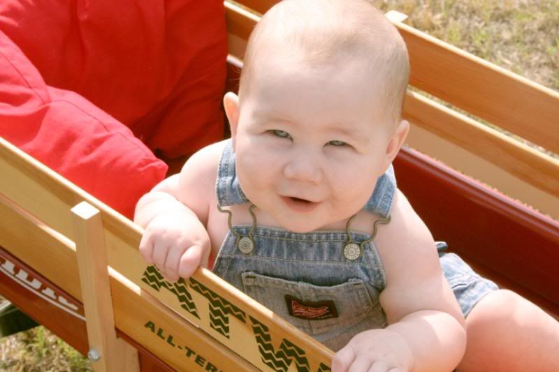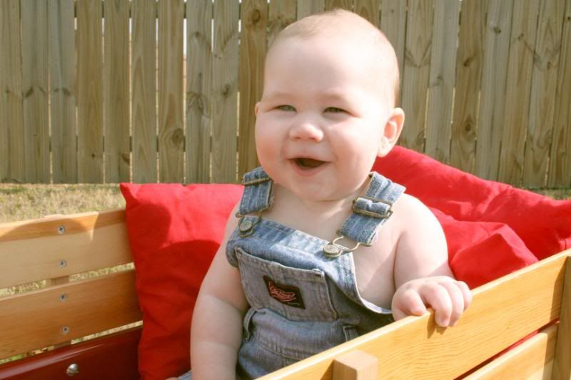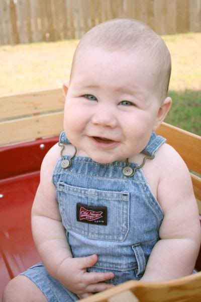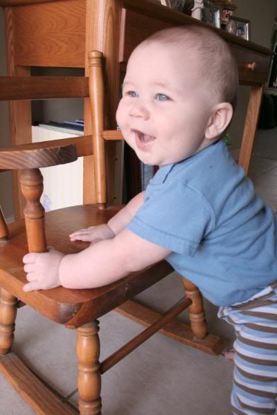 Tyler was born in October 2007 and is the happiest baby. He's really working on developing a personality now and I'm excited to see who he's going to be. He loves his big brother and can keep up with him every step of the way now. He smiles at everyone and everything and has the greatest laugh you've ever heard! But mostly now he likes getting into things. Even with a room full of toys, his favorite pass time is pulling things out of the kitchen cabinets or trying to get his hands on a remote, Wii controller or phone.