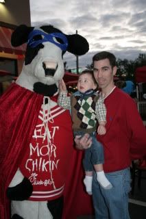 On Saturday night, we went to Chick-Fil-A's Super Hero Night. Even the cow dressed up for the occasion! For us, it's really any excuse to go eat at Chick-Fil-A.