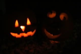 Our pumpkins all lit up.