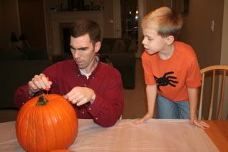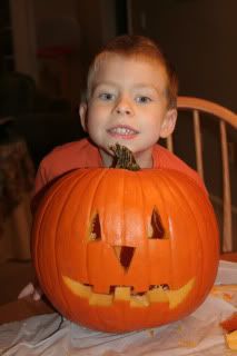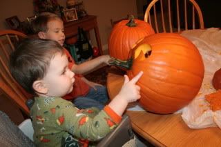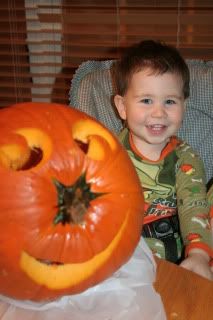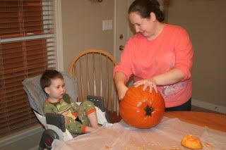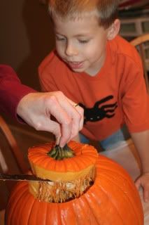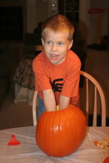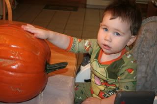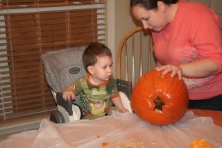 Samuel really liked pulling out all the seeds and gooey stuff.