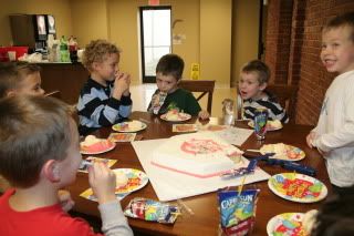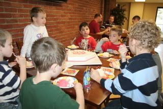 On Saturday, we celebrated Samuel's 6th Birthday with a kickball party. Six of his buddies were able to come and the boys had a great time playing kickball.