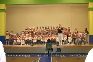 This is half of the Kindergarten classes, the other half sang in the morning. There are 10 classes at Samuel's school.