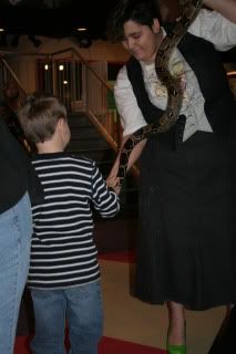 While we were there, they had their creature feature. They had a snack, chinchilla and tarantula. Samuel got to touch the snack and chinchilla and he said the chinchilla was really soft.