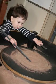 This is one of their very favorite things. They are turn tables which you load with sand and then you can draw different designs as it turns. They can spend forever doing this.