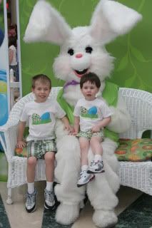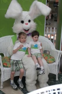 During our shopping trip today, we took a little time to visit the Easter Bunny. Tyler loves the Easter Bunny but Samuel is no longer impressed. The pictures were cute though!